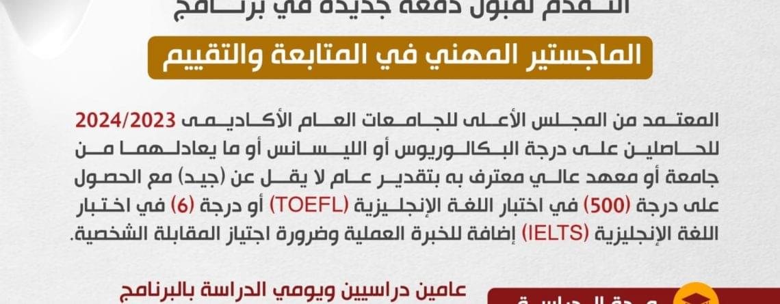 أعلن معهد التخطيط القومي فتح باب التقدم لقبول دفعة جديدة في برنامج الماجستير المهني في “المتابعة والتقييم” المعتمد من المجلس الأعلى للجامعات للعام الأكاديمي 2023/2024، للحاصلين على درجة البكالوريوس أو الليسانس أو ما يعادلهما من جامعة أو معهد عالي معتمد.