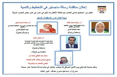 مناقشة رسالة ماجستير مقدمة من الباحثة : سعاد حسين محمد عبد النعيم admin2023-05-31T21:35:17+03:00 اعلان مناقشة رسالة ماجستير فى التخطيط و التنمية اطار مقترح للشراكة بين الحكومة والمجتمع المدنى لتنمية المناط... 16 مايو 2022التخطيط الاجتماعي و الثقافي, المراكز العلميةComments OffRead more...