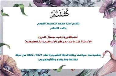 تهنئه admin2023-05-30T08:29:03+03:00 الدكتورة / هبه جمال الدين لفوزها بجائزة الدولة التشجيعية لعام 2022/2021 13 يونيو 2022التصنيف الرئيسىComments OffRead more...