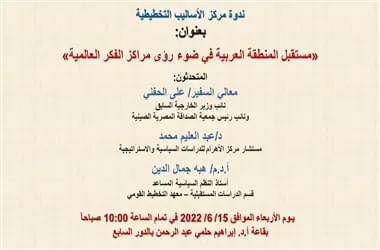ندوة مركز الأساليب التخطيطية admin2023-05-30T08:21:44+03:00 بعنوان : «مستقبل المنطقة العربية في ضوء رؤى مراكز الفكر العالمية» 15 يونيو 2022التصنيف الرئيسىComments OffRead more...