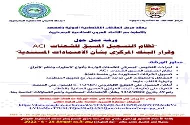 ورشة عمل حول admin2023-05-30T08:24:10+03:00 نظام التسجيل المسبق للشحنات ACI وقرار البنك المركزى بشأن الاعتمادات المستندية 15 يونيو 2022التصنيف الرئيسىComments OffRead more...
