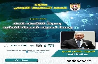 غدا، يستضيف صالون معهد التخطيط القومي السيد/ هاني قدري، وزير المالية الأسبق admin2023-05-30T09:48:36+03:00 وذلك للحديث عن الاقتصاد المصري والتحديات التي يواجهها في مسيرته التنموية، وذلك في حلقة بعنوان: "وصولا لاقتصا... 05 يونيو 2022التصنيف الرئيسىComments OffRead more...