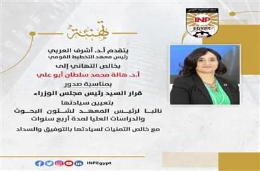 Congratulations: The Prime Minister’s decision to appoint Prof. Hala Muhammad Sultan Abu Ali, Vice President of the Institute of National Planning for Research and Higher Studies, for a period of four years admin2023-05-26T16:23:39+03:00 Prof. Ashraf Elaraby President of the National Planning Institute Sincere congratulations to A.D. Hala Muham... 18 Apr 2023Main CategoryComments OffRead more...